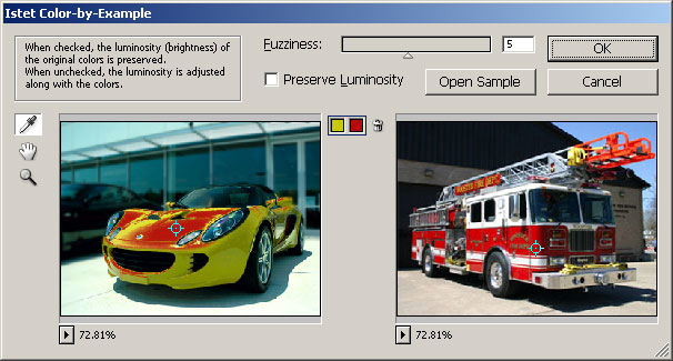 the sample color, so I unchecked the Preserve Luminosity check box.